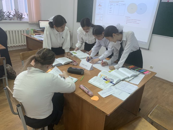 Айлық барысында пән мұғалімдері бір-бірімен тәжірибе алмасып, ой бөлісіп, « Жұмыла көтерген жүктің жеңіл» болатындығын, алда талай белестерді бірге атқарып, талай жетістікке жететіндіктеріне сенімдері мол.